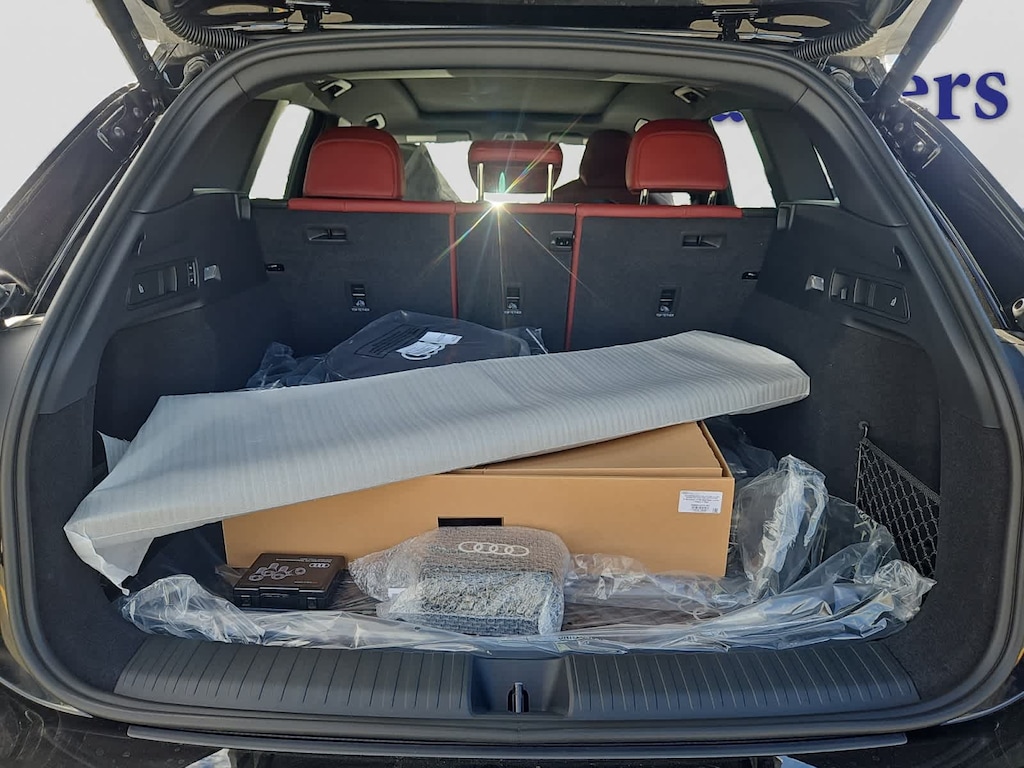 Navigation, Leather Seats, Sunroof, Panoramic Roof, All Wheel Drive Audi Premium Plus with Mythos Black metallic exterior and Red interior features a Electric Motor.