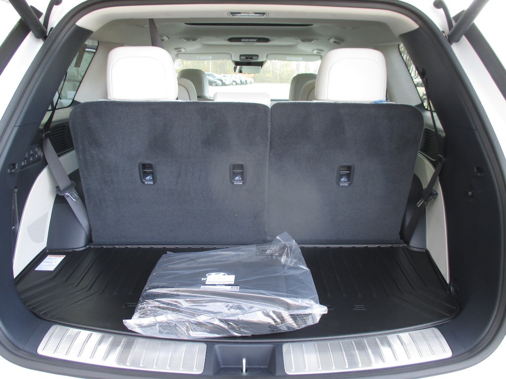 Leather Seats, Third Row Seat, Navigation, All Wheel Drive, Quad Bucket Seats. Hyundai Calligraphy with Creamy White Pearl exterior and Gray/Navy interior features a V6 Cylinder Engine with 287 HP at 5800 RPM*.